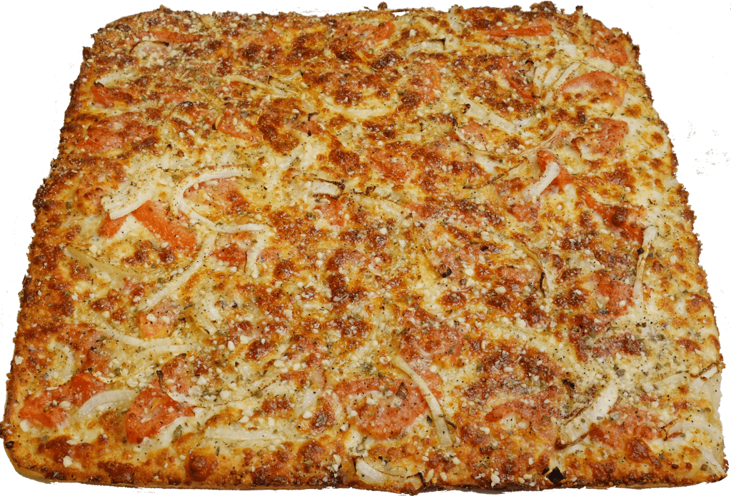 Mozzarella, parmesan, diced ripe tomatoes & fresh onions. Just like Grandma used to make!