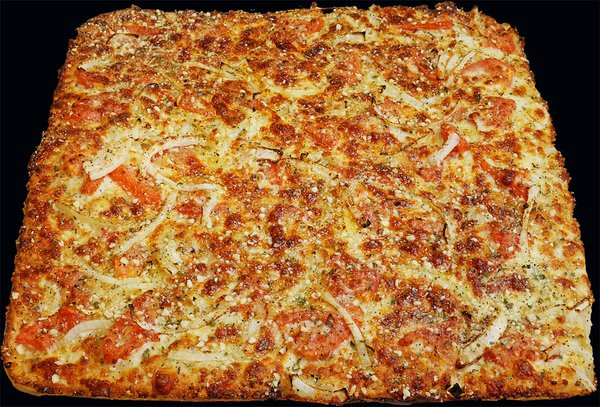 Mozzarella, Parmesan, Diced Ripe Tomatoes And Fresh Onions, It’s Topped With Franco’s Special Spices!