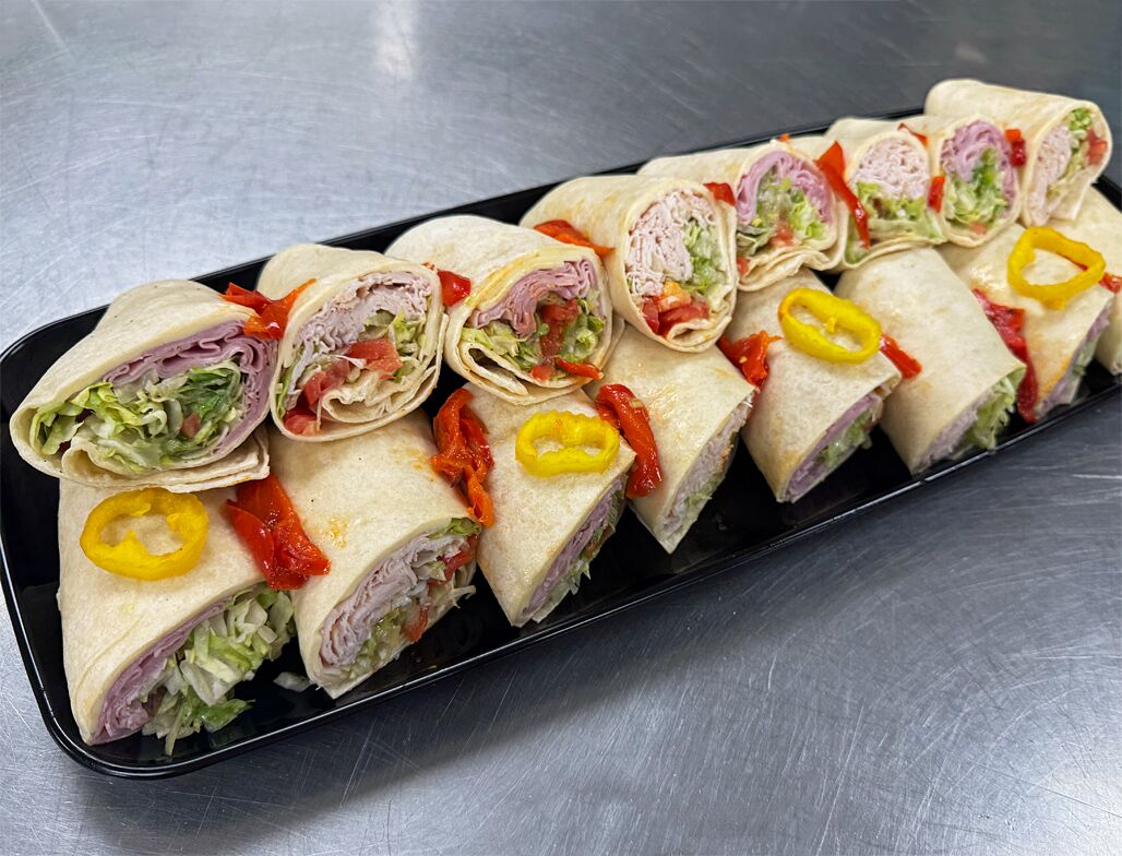 Choose Eight Wraps on White Or Wheat. Additional Charge For Hot Wraps